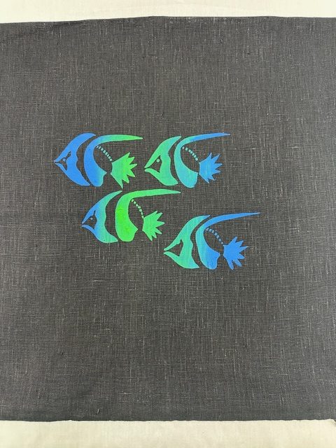 Blue/Green Fish on black linen